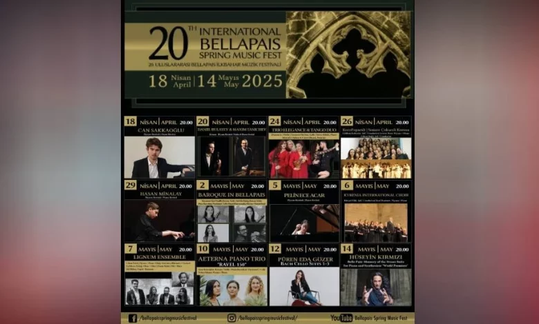 Kuzey Kıbrıs Müzik Derneği’nin bu yıl 20’ncisini düzenlediği Uluslararası Bellapais İlkbahar Müzik Festivali 18 Nisan-14 Mayıs tarihleri arasında Bellapais Manastırı’nda yapılıyor.
