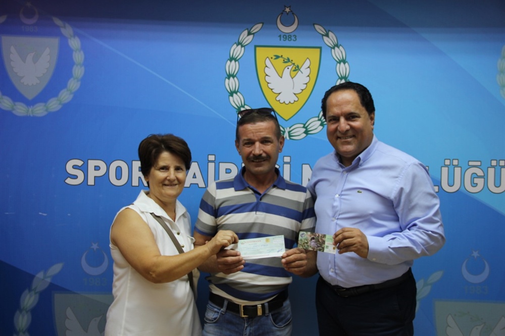 Devlet Piyangosu’nun 18 Eylül tarihli çekilişinde 400 bin TL’lik büyük ikramiye talihlisi Emrah Aptoula, ödülü bugün Spor Dairesi Müdürü Alkan Değirmencioğlu’ndan aldı.