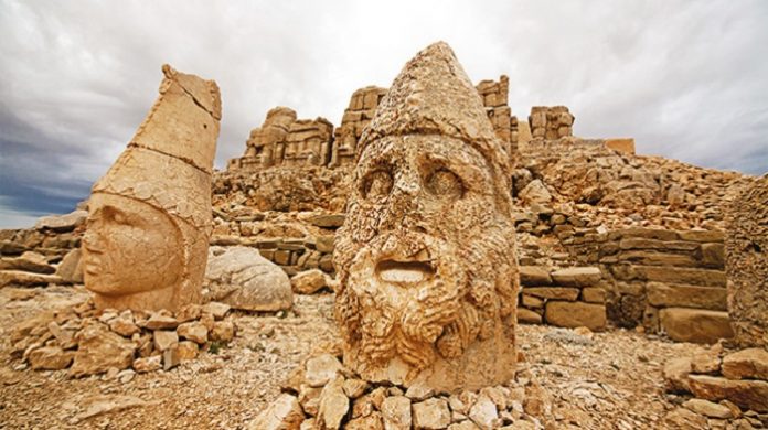 Nemrut Dağı yamaçlarındaki olağanüstü güzellikteki anıtsal heykeller, Adıyaman’ın Kahta İlçesinde bulunuyor. Bu kalıntılar, 2206 metre yükseklikte Nemrut’un Doğu, Batı ve Kuzey teraslarına yayılarak harikulade bir manzara oluşturuyor. Kommagene Kralı I. Antiochos’un tanrılara ve atalarına minnetini göstermek için kireç taşı bloklarından yaptırdığı iyi korunmuş 8-10 metrelik heykeller, UNESCO Dünya Miras Listesi’ne 1987 yılında alındı. Heykeller Helenistik, I. Antiochos’un, annesinin Hellen, babasının ise Pers soyundan gelmesinden dolayı Batı ve Doğu arasında bir köprü olmuştur. Doğu ve Batı Terasları’nda Antiochos ile tanrı ve tanrıça heykellerinin yanı sıra aslan ve kartal heykelleri bulunur. Batı Terası’nda aslanlı bir horoskop yer alır. Güneşin doğuşunun izlendiği Doğu Terası kutsal merkez olduğu için en önemli heykel ve mimari kalıntılar buradadır. Yaklaşık 10 metrelik tahtlarda sıra halinde oturmuş kral ve tanrı heykellerinin yüzü güneşe doğru bakar.