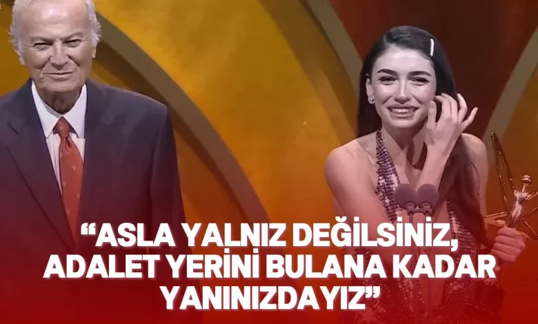 Ediz Hun’un ödülü takdim etmesinin ardından Hazar Ergüçlü, ödülünü almak üzere sahneye çıktı ve konuşmasına şöyle devam etti: “Hepiniz hoş geldiniz, sevgili jüri üyelerine, halkımıza çok teşekkür ederim. Çok mutluyuz, gördüğünüz gibi herkes yer içer hesabı Dilber öder, buraya da ödülü almaya ben geldim. Tüm ekip burada olmak istedi ancak set devam ediyor bu yüzden maalesef ben tek başıma katılabildim. Çok teşekkür ederiz tekrar, bu değerli ödülü bize layık gördüğünüz için.”
