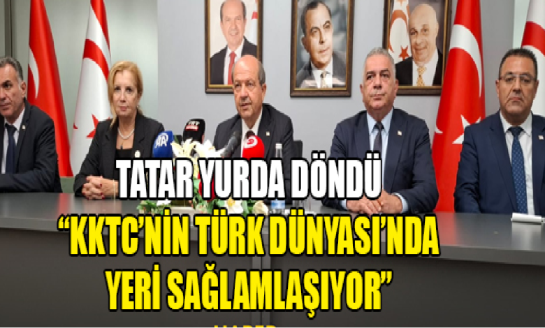 Azerbaycan Cumhurbaşkanı İlham Aliyev’in davetlisi olarak, Türk Devletleri Teşkilatı (TDT) 12’nci Devlet Başkanları Zirvesi’ne katılmak üzere Bakü’ye, ardından da Gebele’ye giden Cumhurbaşkanı Tatar, Ercan Havaalanı’nda düzenlediği basın toplantısında Azerbaycan temaslarını değerlendirdi.