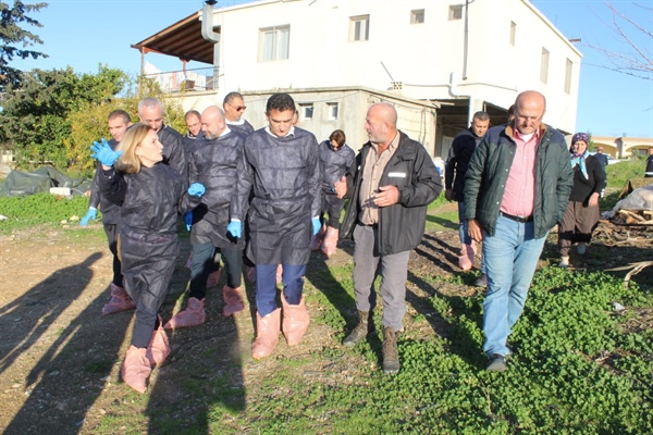 Bakan Oğuz, dezenfeksiyon çalışmalarını inceleyerek, şüpheli olan ağıl sahipleriyle görüştü.