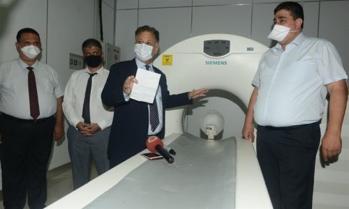 “Bakan Pilli, yeni bir tomografi cihazı alınan Ayaktan Tanı Merkezi’ni ziyaret etti”