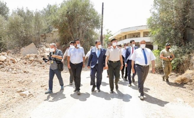 Başbakan Ersan Saner, Maraş’ın askeri bölge olmaktan çıkarılan bölümünü ziyaret ederek, incelemelerde bulundu.