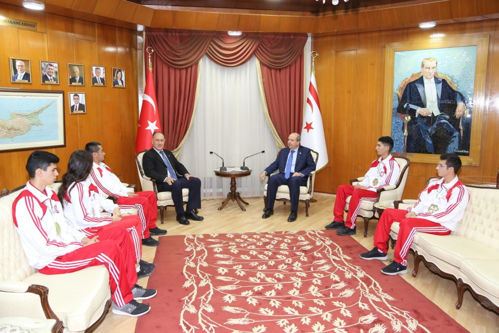 Başbakan Ersin Tatar, Kickboks Federasyonu Başkanı Niyazi Demirel ve sporcuları kabul etti.