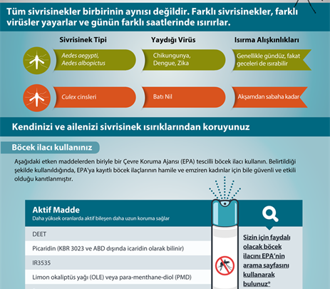 Sulak alanlar gibi riskli bölgelerde bulunmak zorunda kalacak olanların öncesinde vücutlarına sivrisinek kovucu spreyler sıkması.