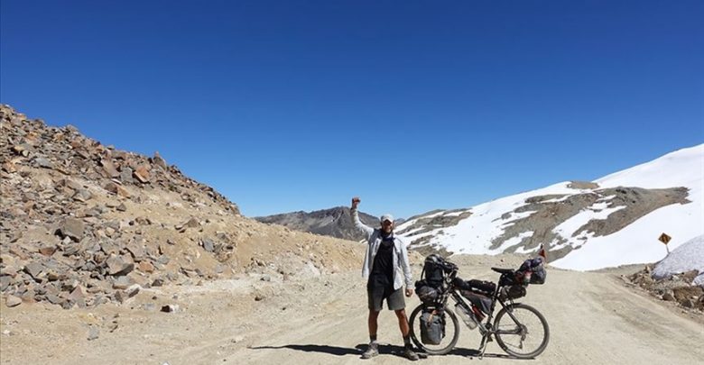 Bogota, – Arkasına küçük bir Türk bayrağı taktığı bisikletiyle 8 yıl önce çıktığı dünya turunda 49 ülke geçen 41 yaşındaki Gürkan Genç, “en fazla çöl bölgesi ve her kıtanın en yüksek araç geçiş noktalarında pedal çeviren bisikletli” olarak Guinness Rekorlar Kitabı’na adını yazdırmayı hedefliyor.
