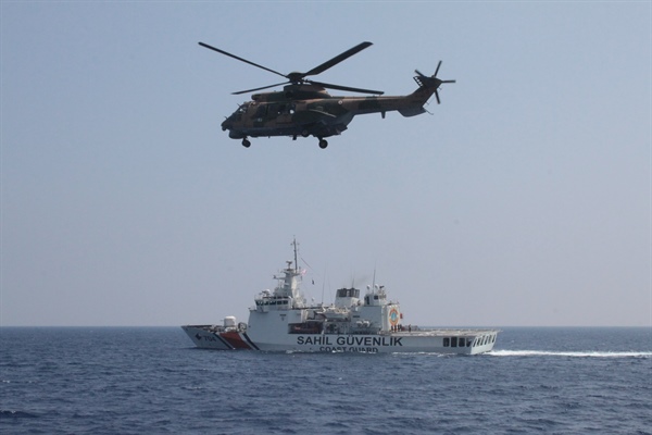 Sahil Güvenlik Komutanı Tuğamiral Ahmet Kendir, Umut gemisinde tatbikatı değerlendirdi.