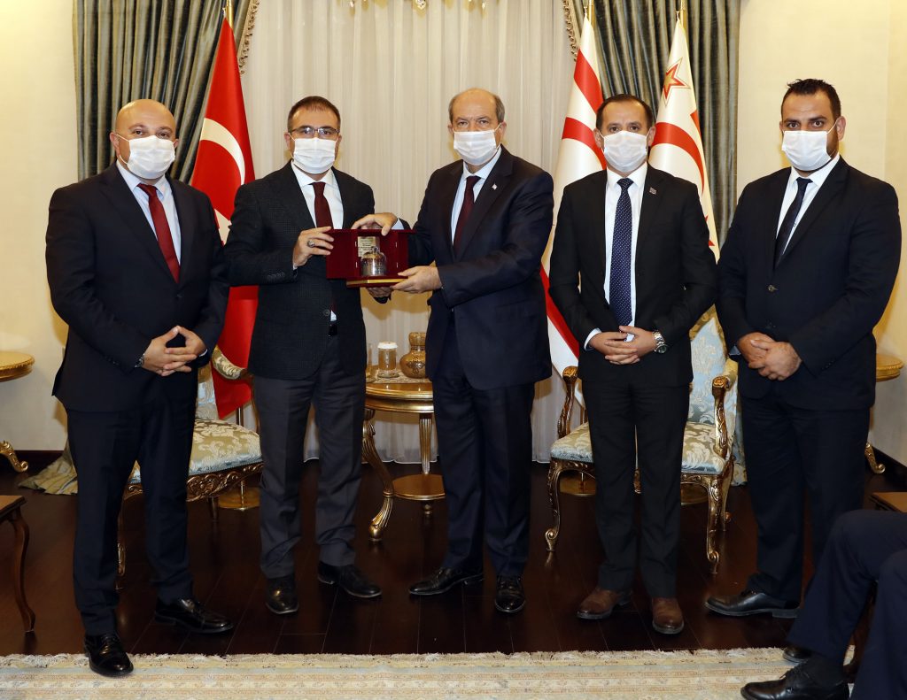 Cumhurbaşkanı Ersin Tatar, Avrasya Ekonomik İşler Derneği (EkoAvrasya) Yönetim Kurulu Başkanı Hikmet Eren ve beraberindeki heyeti kabul etti.
