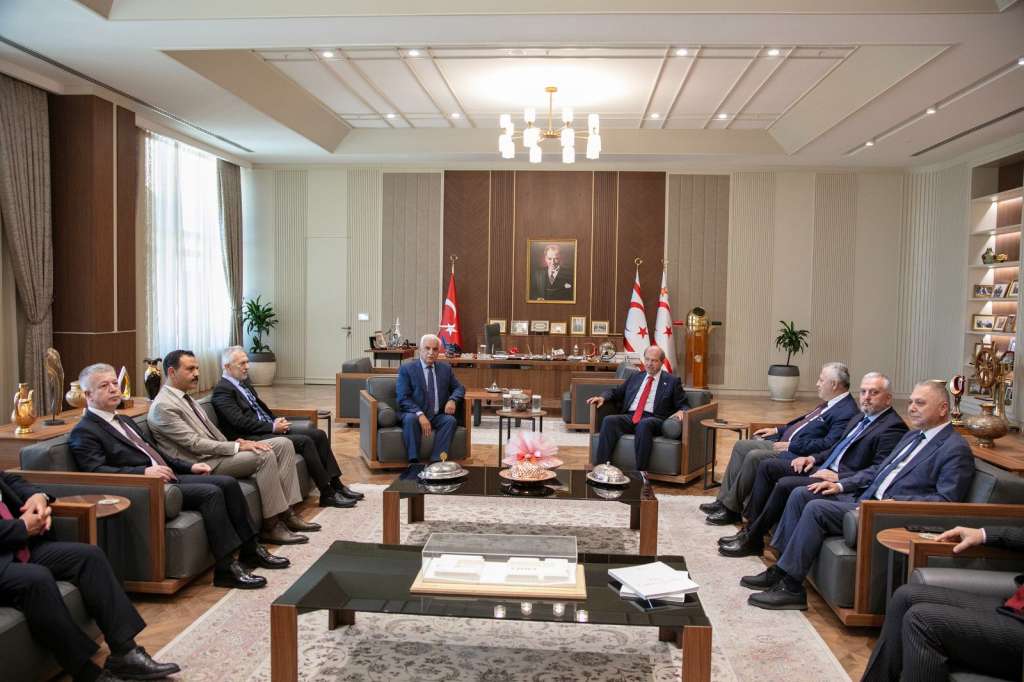 Cumhurbaşkanı Ersin Tatar, Ziraat Bankası Yönetim Kurulu Başkanı Burhaneddin Tanyeri ve beraberindeki heyeti kabul etti.
