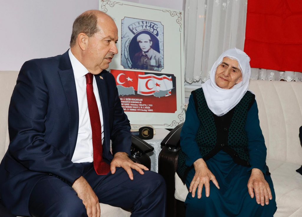 Cumhurbaşkanı Ersin Tatar, 20 Temmuz 1974’te Kıbrıs Barış Harekatı sırasında şehit olan Malatyalı Seçim Kılıçaslan’ın ailesini evlerinde ziyaret etti.