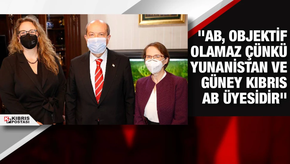 “Kıbrıs Türk halkı, 60 yıldan beridir kendi kendini yönetiyor. Bugün, Kıbrıs Türk halkı, tüm kurum ve kuruluşlarıyla kendi devletine sahiptir. BM’nin desteklediği 2004 Annan Planı’na Kıbrıslı Türklerin evet demesine ve Rumların reddetmesine rağmen, Kıbrıslı Rumlar AB’ye haksız bir şekilde tek taraflı üye yapıldı. AB, objektif olamaz çünkü Yunanistan ve Güney Kıbrıs AB üyesidir.”
