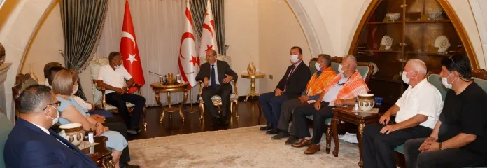 Cumhurbaşkanı Ersin Tatar bugün, Yöresel Anadolu Kültür Festivali’ni düzenleyen Anadolu Mahallesi Muhtarı Ali Buruk, Piyale Paşa Mahallesi Muhtarı Rifat Sevindik, Seracılar Birliği Başkanı Veli Bayır, Kıbrıs Yörük Türkmen Kültür Derneği Başkanı Ferit Ergün, Başkan Yardımcısı Mahmut Coşkun ve yönetim kurulu üyeleri, Pertev Paşa Mahallesi Muhtarı Zuhal Altınışık’ı kabul etti.