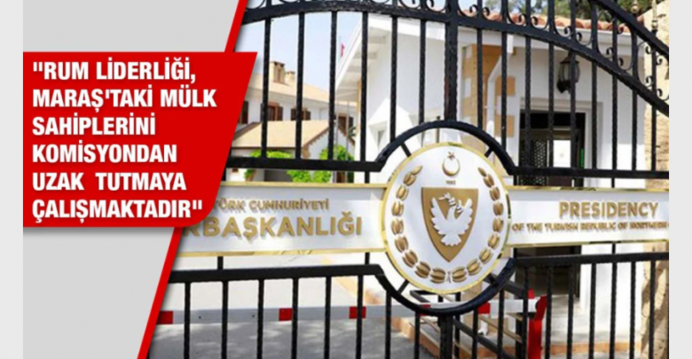 Cumhurbaşkanlığı’ndan yapılan yazılı açıklamada, Rum liderliğinin, Maraş açılımına yönelik gerçek dışı iddialarına bir yenisini ekleyerek Taşınmaz Mal Komisyonu’nu “hukuki bir tuzak” olarak nitelendirmek suretiyle Maraş’taki mülk sahiplerini komisyondan uzak tutmaya çalıştıkları vurgulandı.