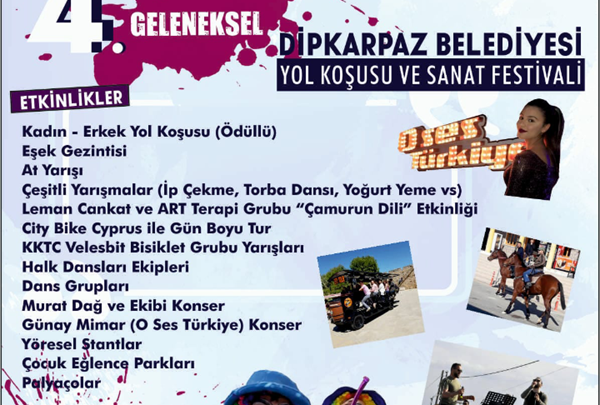 Dipkarpaz Belediyesi’nin bu yıl 4’üncüsünü gerçekleştireceği “Yol Koşusu ve Sanat Festivali” pazar günü yapılıyor.
