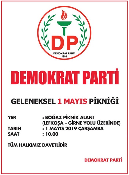 Partiden verilen bilgiye göre, DP’nin geleneksel 1 Mayıs Pikniği, yarın saat 10.00’da Girne Boğaz Piknik Alanı’nda yer alacak.