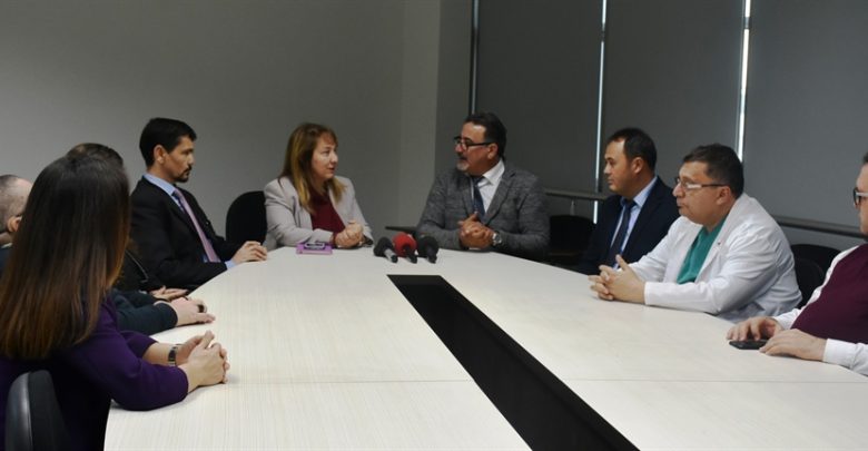 Dr. Burhan Nalbantoğlu Onkoloji Servisi’nde yer alan görüşmede Başhekim Bülent Dizdarlı ve Başhekim Başyardımcısı Dr. Adil Özyılkan da hazır bulundu.