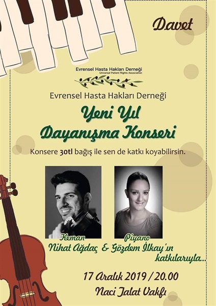 Evrensel Hasta Hakları Derneği, kamu yararına gerçekleştirdiği faaliyetlerin finansmanı için “Dayanışma Konseri” düzenleyecek.