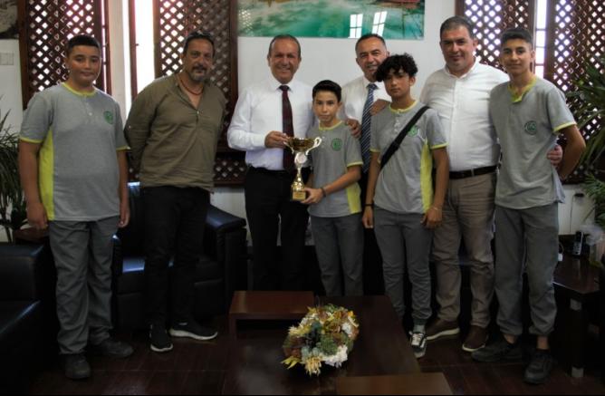 Konuşmaların ardından Ataoğlu, Türkiye kupasını kazanan öğrencilere hediyeler verdi, sohbet etti.