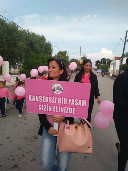 Belediyeden yapılan açıklamaya göre, Geçitkale Belediye binası önünden Kasaba Meydanı’na kadar olan yürüyüş etkinliğine katılanlar, pembe tişörtler giyip, pembe balonlar taşıdı ve pankartlarla farkındalık mesajı verdi.