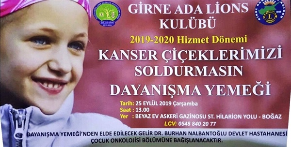 Girne Ada Lions Kulübü Derneği, ”Kanser Çiçeklerimizi Soldurmasın” adı altında dayanışma yemeği düzenliyor.