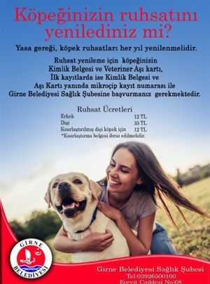 Girne Belediyesi, Belediye sınırları içerisinde bulunan köpeklerin Belediyenin sağlık şubesi tarafından ruhsatlandırılması gerektiğini hatırlattı.