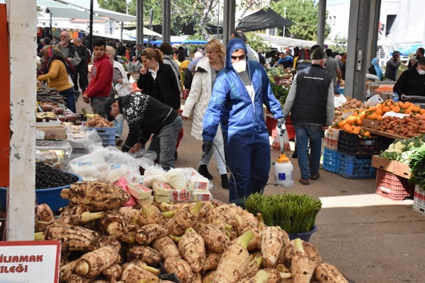 Açıklamada, sabahın erken saatlerinde, Çarşamba Pazarı’nda ilaçlama ve bilgilendirme çalışmalarına hız veren Girne Belediyesi sağlık ekiplerinin, Oda tiyatrosu ve Çarşamba Pazarı bölgesini dezenfekte ilaçlarla ilaçladığı belirtildi.