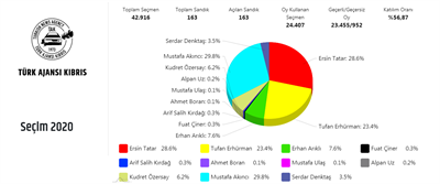 Girne’deki 163 sandıkta 24,407 seçmen oy kullandı. Geçerli oy sayısı 23,455, geçersiz oy 952 oldu. Seçime katılım oranı yüzde 56,87’de kaldı. Bağımsız aday Mustafa akıncı Girne’deki yarışı önde tamamladı.