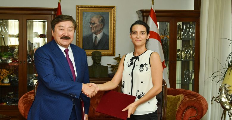Girne Üniversitesi ve TÜRKSOY’a üye ülkeler arasında eğitim ve kültür alanlarında işbirliğinin geliştirilmesini hedefleyen protokole, Girne Üniversitesi Mütevelli Heyeti Başkanı Dr. Cemre Günsel Haskasap ile TÜRKSOY Başkanı Düsen Kaseinov imza koydu.