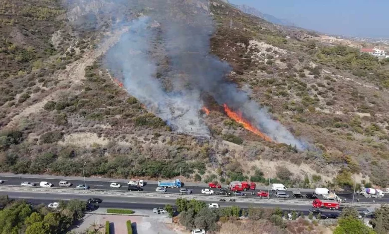 GİRNE-LEFKOŞA ANA YOLU YANGIN NEDENİYLE TRAFİĞE KAPATILDI!