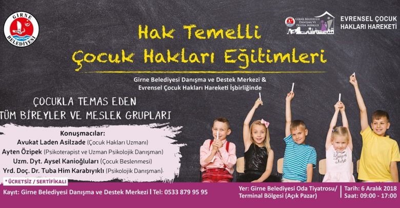 Girne Belediyesi Danışma ve Destek Merkezi ile Evrensel Çocuk Hakları Derneği işbirliğinde yarın Oda Tiyatrosu’nda gerçekleştirilmesi planlanan, “Hak Temelli Çocuk Hakları Eğitimleri” hava koşulları nedeniyle ertelendi.