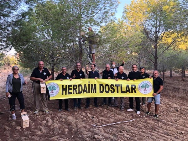Herdaimdostlar grubu, bu sabah, Bedis bölgesindeki çam ağaçlarına kuş yuvası yerleştirdi.