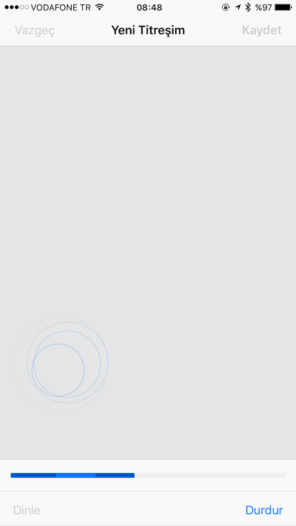 Bu bölüme girdikten sonra ekranın herhangi bir noktasına bir süre dokunun ve bırakın. Bu şekilde kendi titreşiminizi yaratabilirsiniz!