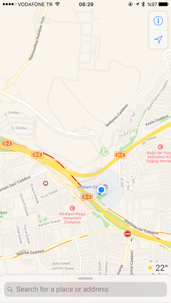 Apple Maps uygulamasını açın; hemen haritanın sağ alt kısmındaki hava durumu ibaresinin üzerine sert basın.