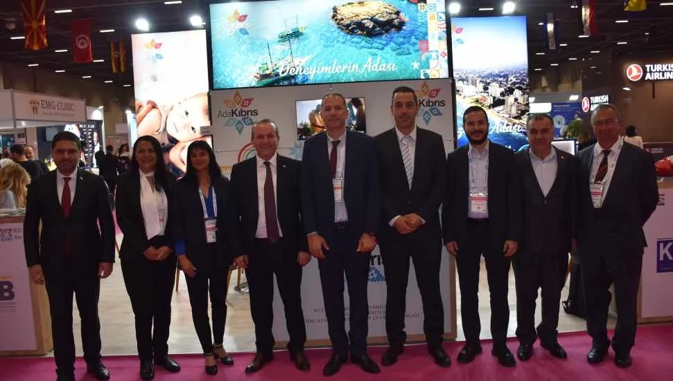Fuardaki KKTC standı, ziyaretçilerden ilgi görüyor.