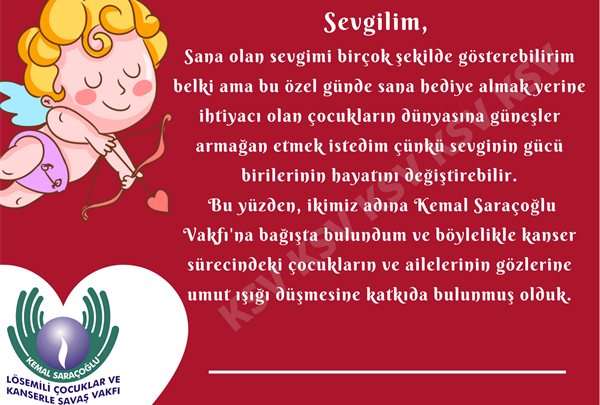 Kemal Saraçoğlu Lösemili Çocuklar ve Kanserle Savaş Vakfı geçtiğimiz günlerde mevcut ürünlerine “Sevgi Kartı”nı da ekledi.