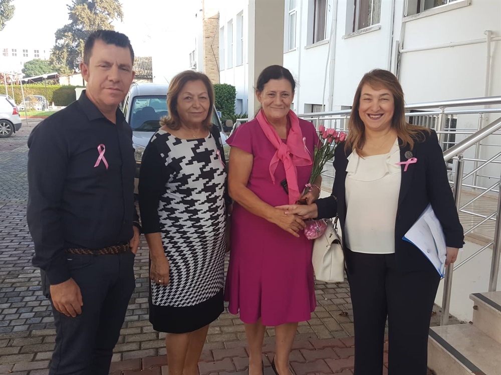 Dernek yetkilileri, 1-31 Ekim Meme kanseri farkındalık ayı nedeni ile bakanlara ve milletvekillerine pembe kurdele de taktı.