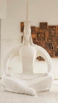 Sanatçı Abdilamitov, Göçebe halkların hükümdarı olan Kağan’ın heykelini yaptı. Ortaya çıkardığı Kağan heykelinde oturan hükümdarı tasvir ederken, göçebe halkın hazinesi olan, özgürlüğün sembolü kanatları açık bir kartala benzetiyor. Dizlerinin üzerine oturmuş Kağan hükümdar temsil ettiği halkını kötülüklerden koruduğunu, başındaki şapkanın ise hükümdarı soğuktan ve rüzgardan koruduğu gibi, kompozisyona da görkemli bir görünüş kattığı belirtiliyor.