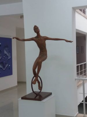 Sanatçı İsken Abdaliev açıklamasında; “İçinden geçtiğimiz koronavirüs salgını ile birlikte hızlı değişim çağında, muazzam bir yaşam hızında bir kişi için ruh dengesi ihtiyaç haline geliyor. Heykeldeki adam denge ve huzur için uğraşıyor. Heykeldeki tekerlek ruh gücünün sembolü. Figürün denge koruması insanın iç dengesinin ne kadar kırılgan olduğunu anlatıyor” ifadelerine yer verdi.