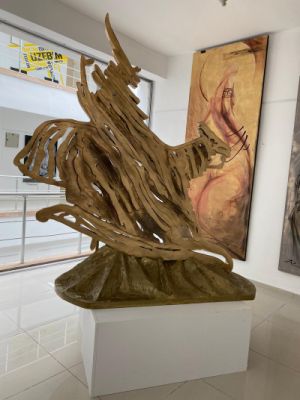 Yakın Doğu Üniversitesi Basın ve Halkla İlişkiler Müdürlüğü’nden verilen bilgiye göre heykel sanatçısı Shokan Tolesh ise, Kabartmalı çift taraflı grafik tekniğinde yaptığı heykel kompozisyonunda günümüzün salgın vebasını vahşi hayvana benzetmiş, heykelin tabanında ise dağlar ve bozkır temalarıyla koronavirüsün işgalini anlatmaya çalıştı.