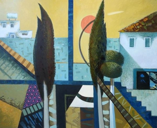 Sanatçı’nın Lefkoşa Manzarası adlı eserinde ise, Lefkoşa sokaklarındaki hurma, zeytin ve yasemin ağaçlarının sihirli bir şekilde birbirleriyle olan uyumunu tuvaline taşıyor.