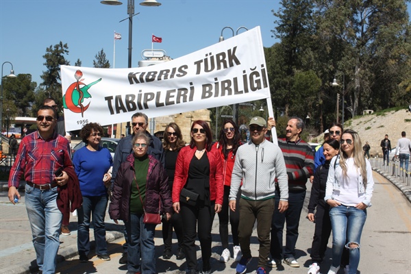 Kıbrıs Türk Tabipleri Birliği’nin organize ettiği etkinlik kapsamında hekimler Girne Kapısı’ndan Sarayönü’ne sembolik bir yürüyüş gerçekleştirdi.