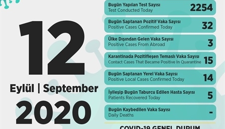 Sağlık Bakanı Ali Pilli, son 24 saatte yapılan test sayısının 2254 olduğunu, 32 pozitif vakaya rastlandığını, 5 kişinin taburcu edildiğini açıkladı.