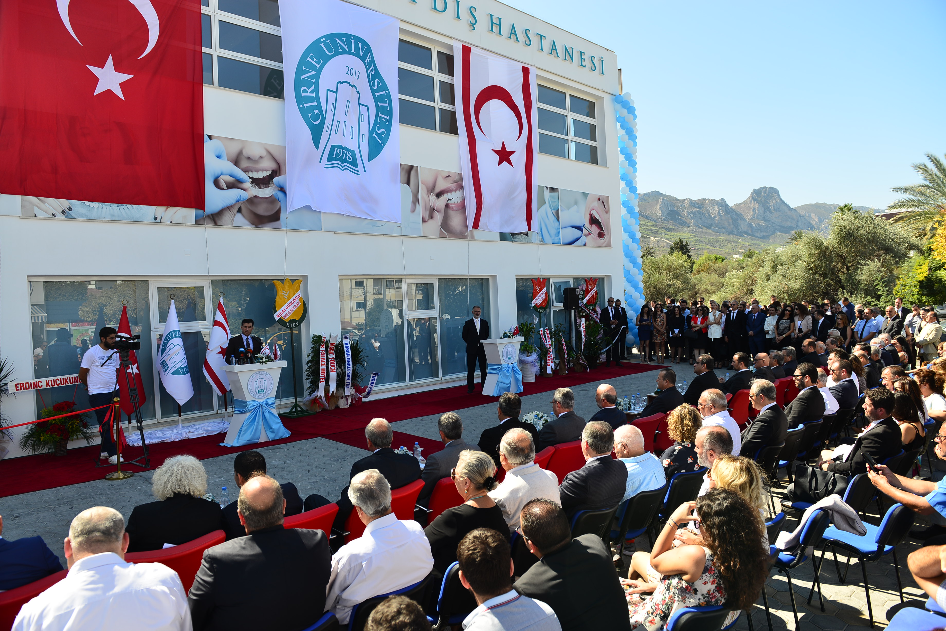 Girne Üniversitesi Diş Hastanesi’nin açılış törenine; Sağlık Bakanı Faiz SUCUOĞLU, İçişleri Bakanı Kutlu EVREN, Tarım ve Doğal Kaynaklar Bakanı Nazım ÇAVUŞOĞLU, Turizm ve Çevre Bakanı Fikri ATAOĞLU, Girne Kaymakamı Mustafa ERİŞMEN, Girne Belediye Başkanı Nidai GÜNGÖRDÜ, Çatalköy Belediye Başkanı Mehmet HULUSİOĞLU, Yakın Doğu Üniversitesi Kurucu Rektörü Dr. Suat İ. GÜNSEL, Yakın Doğu Üniversitesi Mütevelli Heyeti Başkanı Doç. Dr. İrfan S. GÜNSEL, Yakın Doğu Üniversitesi ve Girne Üniversitesi’nin rektör ve yardımcıları, devlet ve hükümet yetkilileri ile misafirler katıldı.