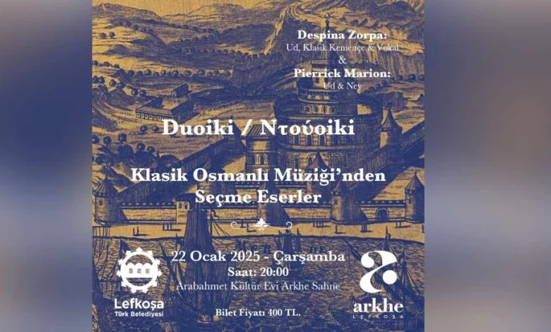 Lefkoşa Türk Belediyesi himayesinde kurulan Kültür Politikaları Belirleme ve Arşiv Çalışmaları merkezi Arkhe’nin düzenlediği yılın ilk konseri, Despina Zorpa ve Pierrick Marion’dan oluşan DUOİKİ (Ντούοiki) Klasik Osmanlı Müziği besteleri ve Geleneksel Doğu Akdeniz müziğinden düzenlemeleri içeriyor.