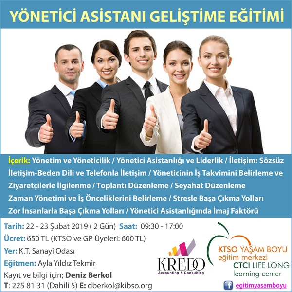 Eğitimle ilgili bilgi ve kayıt, KTSO’dan 22 58 131 numaralı telefondan dahili 5 numara tuşlanarak Deniz Berkol’den alınabilir.