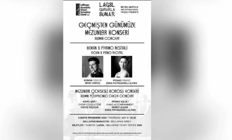 Mezunlar sergisi, 8 Mayıs 2025 Perşembe günü saat 19.00’da Bellapais Manastırı’nda gerçekleşecek. Mezunlar konseri de aynı gün yine Bellapais Manastırı’nda saat 20.30’da başlayacak.