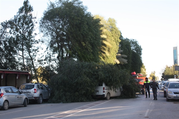 Olay, öğleden sonra, Atatürk Caddesi’nde meydana geldi. Trafik akışına da sorun olan ağacın aracın üzerinden kaldırılmasına çalışılıyor.