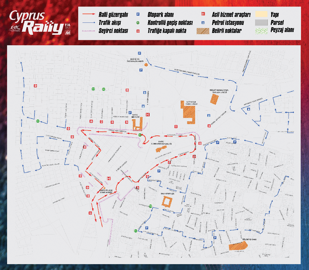 Lefkoşa Türk Belediyesi’nin ev sahipliğini üstlendiği, Kuzey Kıbrıs Turing Otomobil Kurumu (KKTOK) ve Kıbrıs Otomobil Kurumu (CAA) iş birliğiyle bu yıl dördüncüsü gerçekleştirilecek ERC ve MERC Lefkoşa Seyirci Özel Etabı dolayısıyla yarın akşam saat 19.00’dan, cumartesi akşamı saat 19.00’a kadar özel etap hazırlıkları, ralli geçişleri ve ralli sonrası çalışmaları için Lefkoşa’da bazı yollar araç trafiğine ve yaya kullanımına kapatılacak.