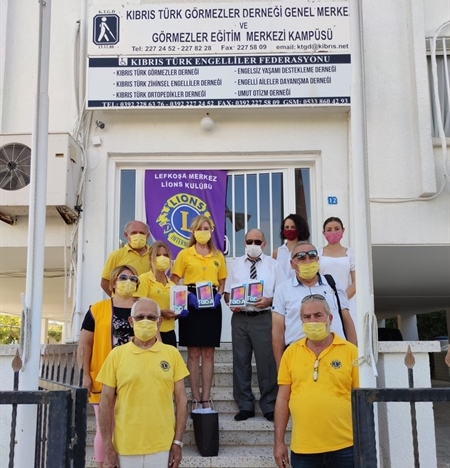 Pervin Gürler Başkanlığındaki Lefkoşa Merkez Lions Kulübü heyeti 8 Eylül Dünya Okuma Yazma Günü nedeniyle Görmezler Derneği’ni ziyaret ederek öğrencilere yönelik eğitimlerde kullanılmak üzere 4 Adet Elektronik Okuma Tableti ve kumaş maske bağışında bulundu.